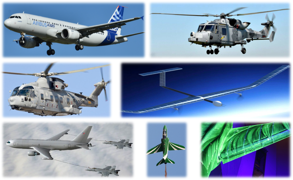 A320, A400M, HAPS Zephyr, Hawk, Lynx Wildcat, Merlin, KC46, Nimrod.